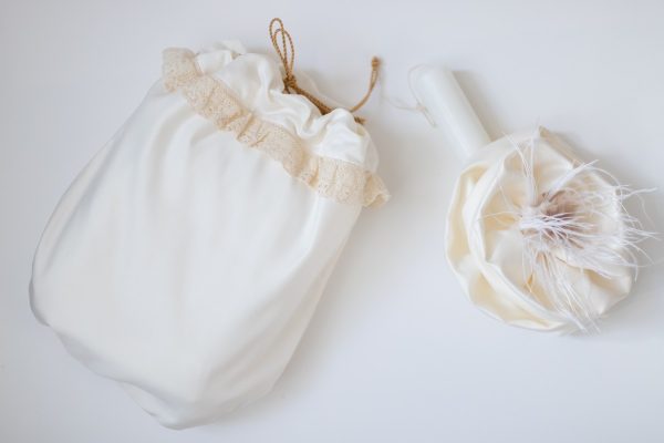 ~ saculet din tafta, accesorizat cu broderie natur, inchidere in snur