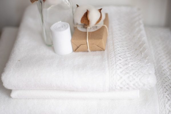 Trusoul pentru botez cu saculet alb, este un model unisex, ideal atat pentru fetite cat si pentru baieti. Prosoapele sunt accesorizate cu o broderie lata din bumbac natural.